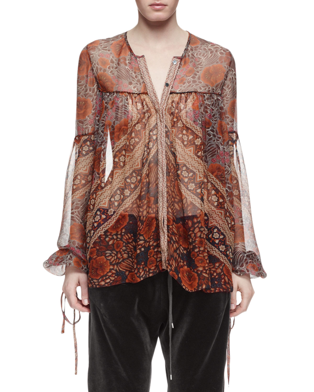 Chloé Button-Front Foulard-Print Blouse, Multi Colors