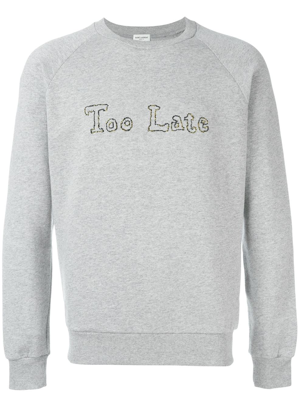 - Saint Laurent 灰色 棉质混纺 Too Late套头衫。 圆领, 长袖, 贴身袖口, 平直下摆。