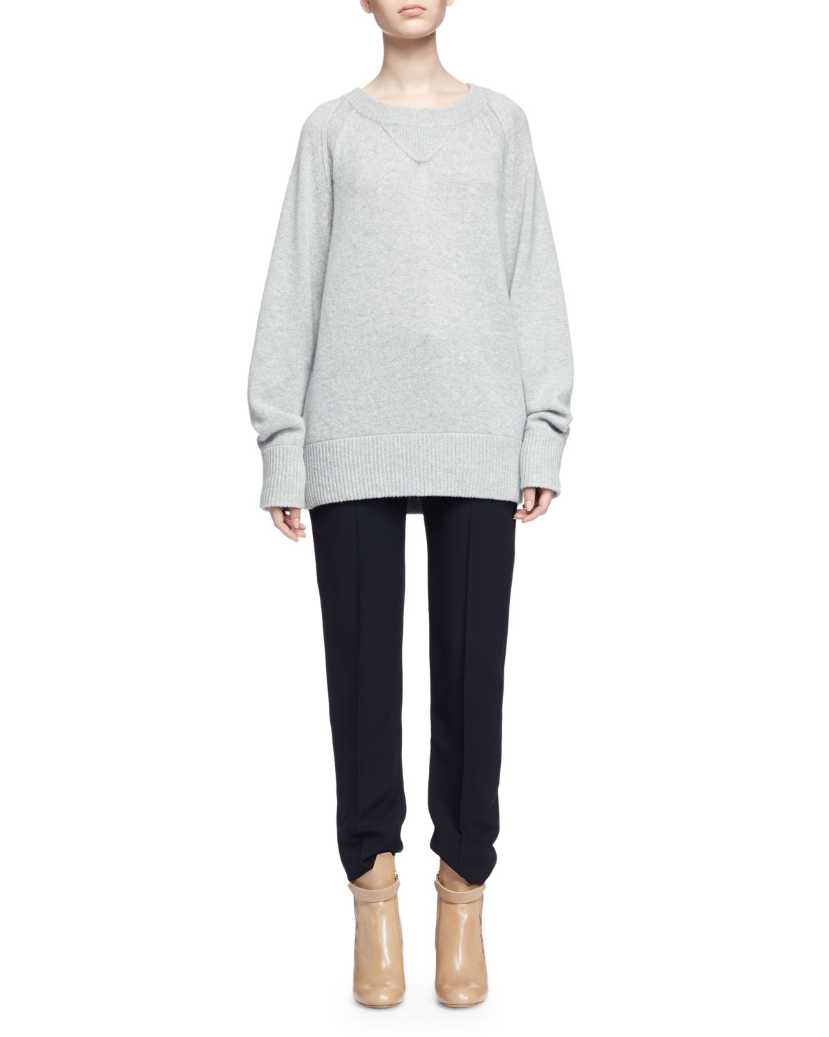 Chloé Chunky Cashmere Crewneck Sweater, Gray