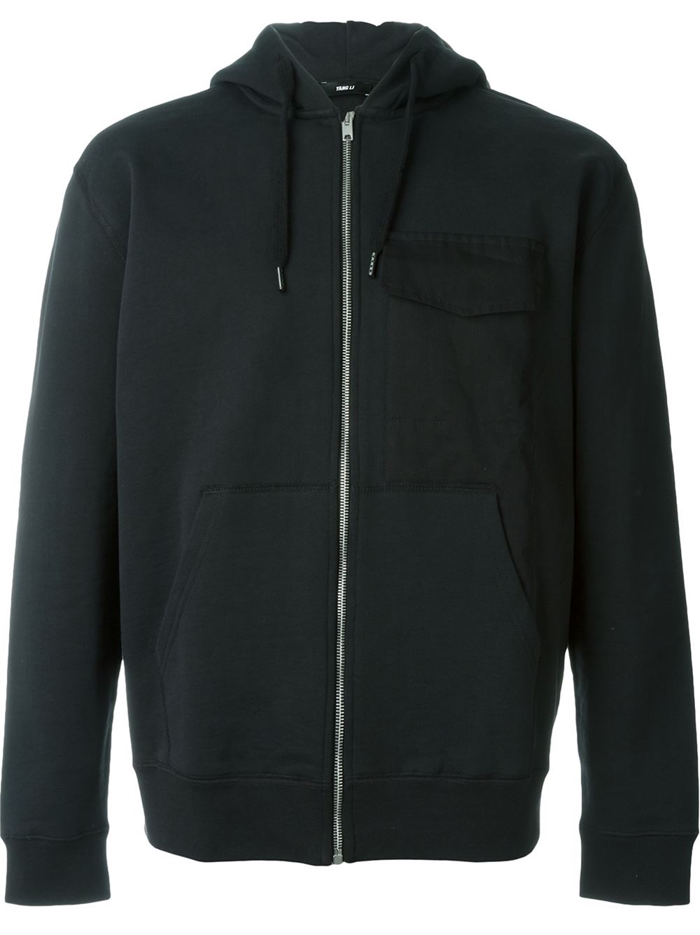 - Yang Li 黑色 全棉 标志印花拉链兜帽夹克。