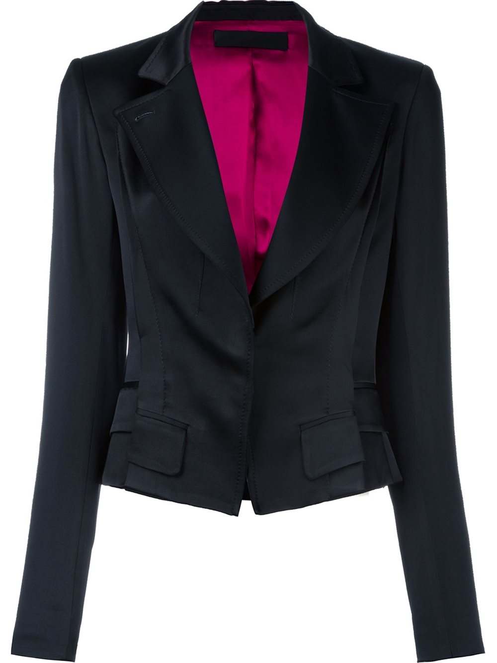 - Haider Ackermann 黑色 棉质丝质混纺 'Glyzinie'西装夹克。