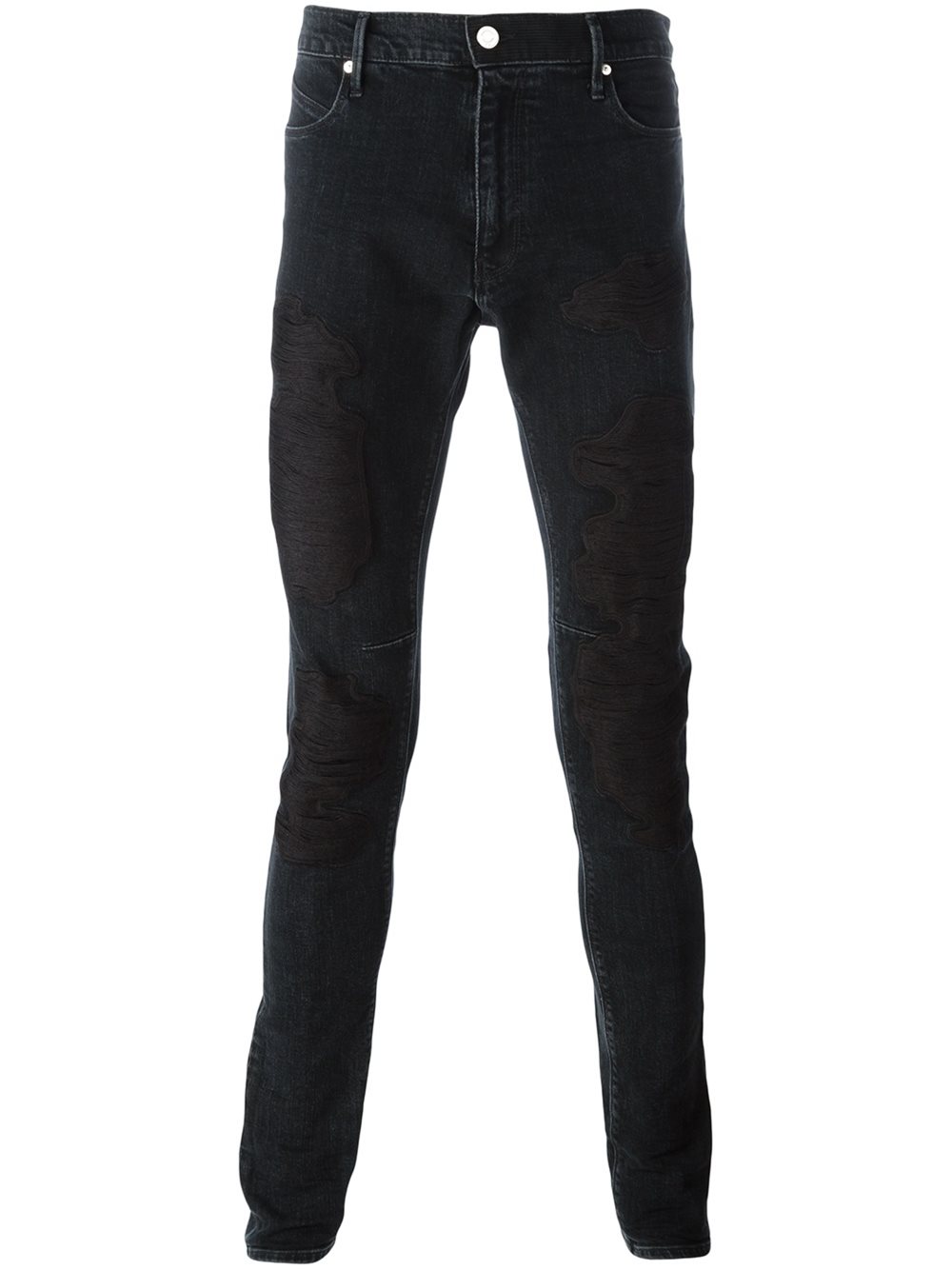 - Road To Awe 黑色 棉质混纺 紧身刺绣牛仔裤。