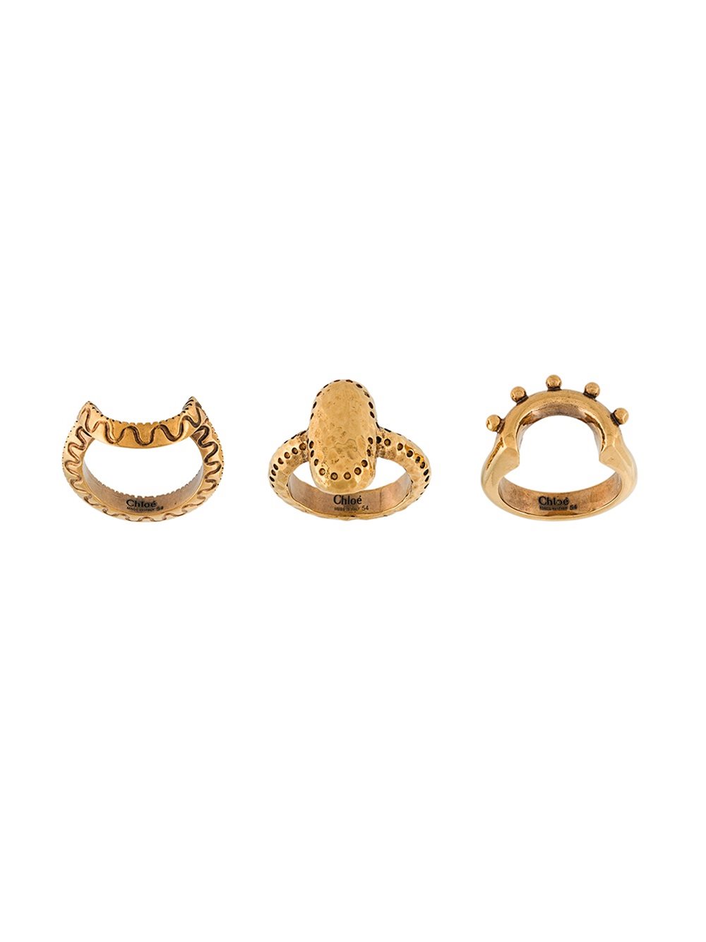- Gold-tone 'Lyzbeth' set of three rings from Chloé featuring an internal logo stamp.