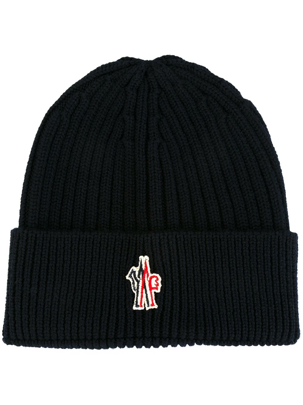 - Blue virgin wool logo patch beanie from Moncler Grenoble.
