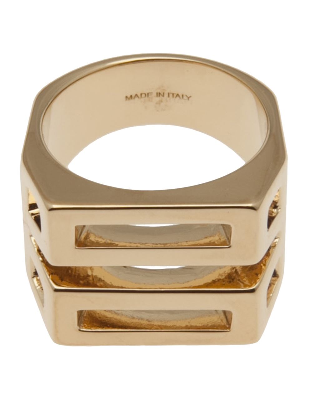 - Chloé 金色 粗犷挖剪镂空戒指. 正面双长方形挖剪设计. 粗犷的戒环.