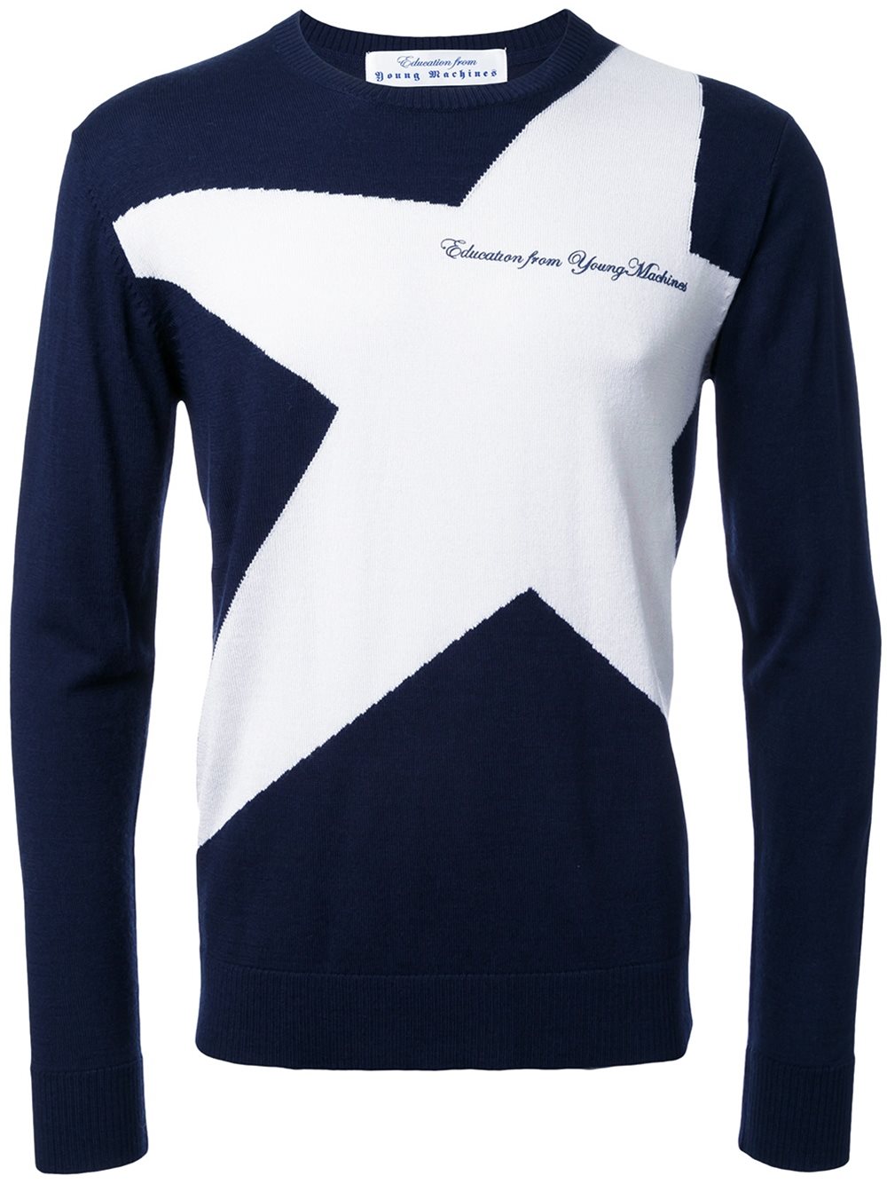 - Education from Youngmachines 海军蓝色 羊毛 星星图案毛衣。