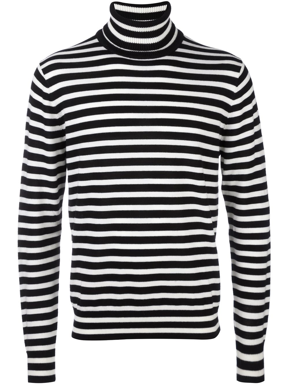 - Ps By Paul Smith 黑色与白色 美利诺羊毛 条纹高领毛衣。