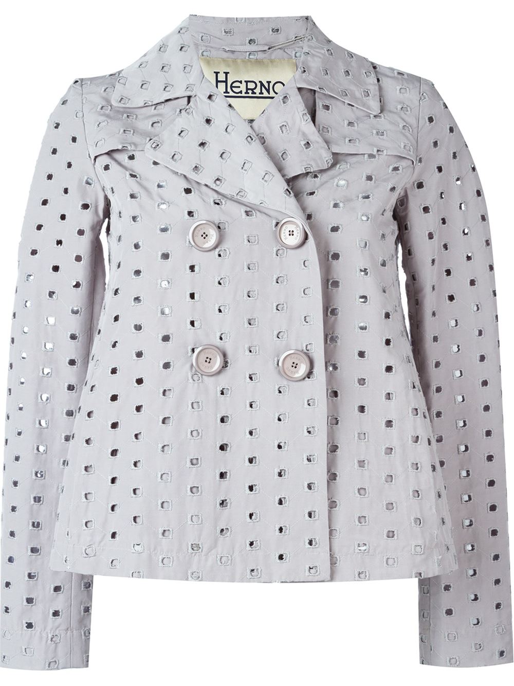 - Herno 浅灰色 棉质混纺 方形孔眼双排扣西装夹克。