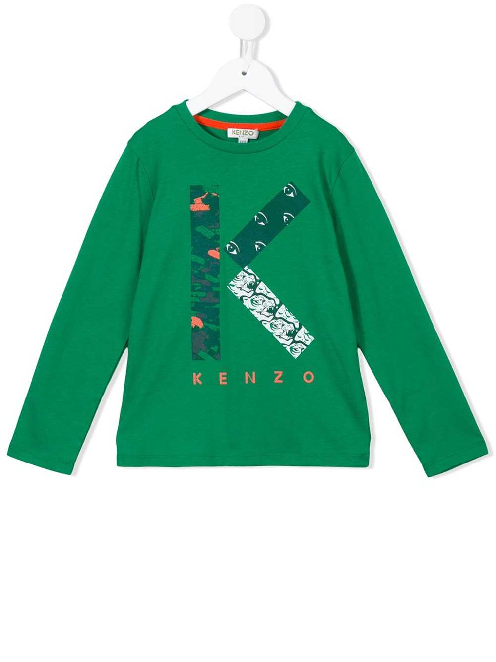 - KENZO KIDS 浅绿色 全棉 'K'T恤。 圆领, 正面饰有印花标志, 长袖, 平直下摆。