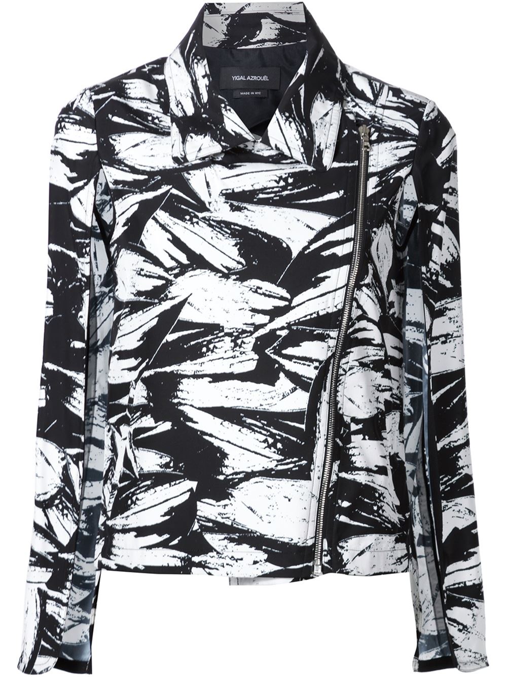 - Yigal Azrouel 黑色 丝绸混纺 印花斗篷夹克。