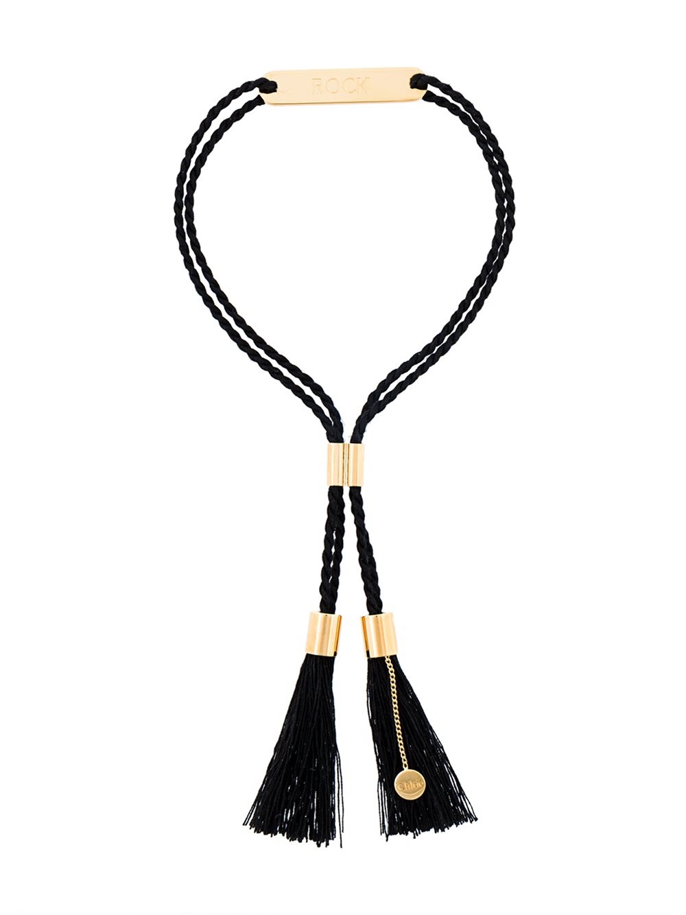 - Chloé (寇依) 黑色 全棉与黄铜 'Messages Rock'手链。 编织细节, 流苏细节, 金色五金配件。