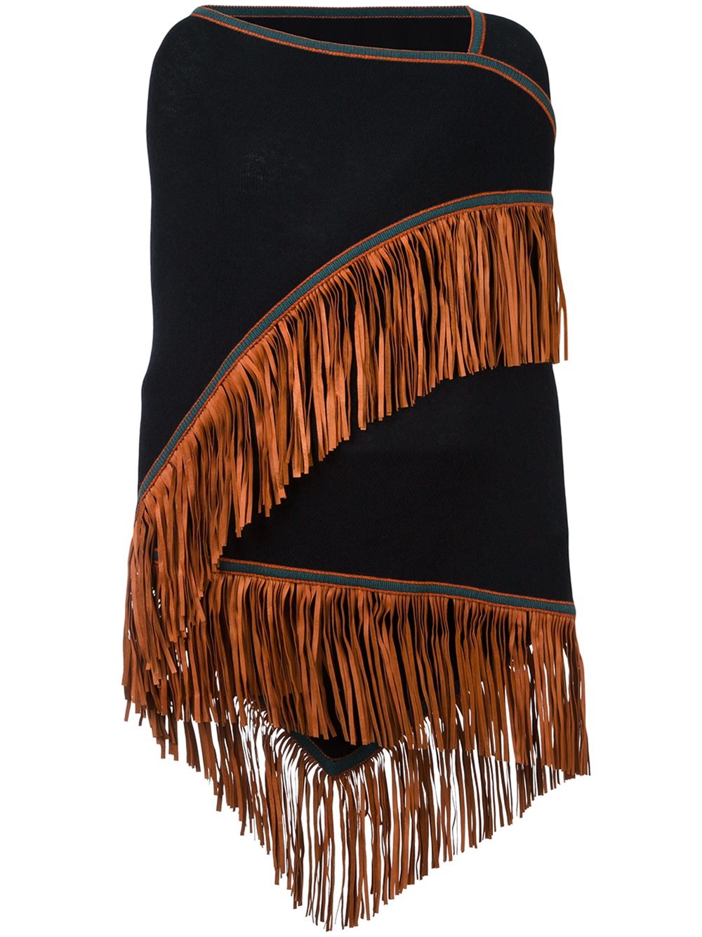 - Antonia Zander 深蓝色 羊绒与羊皮 'Fransenschai'斗篷。