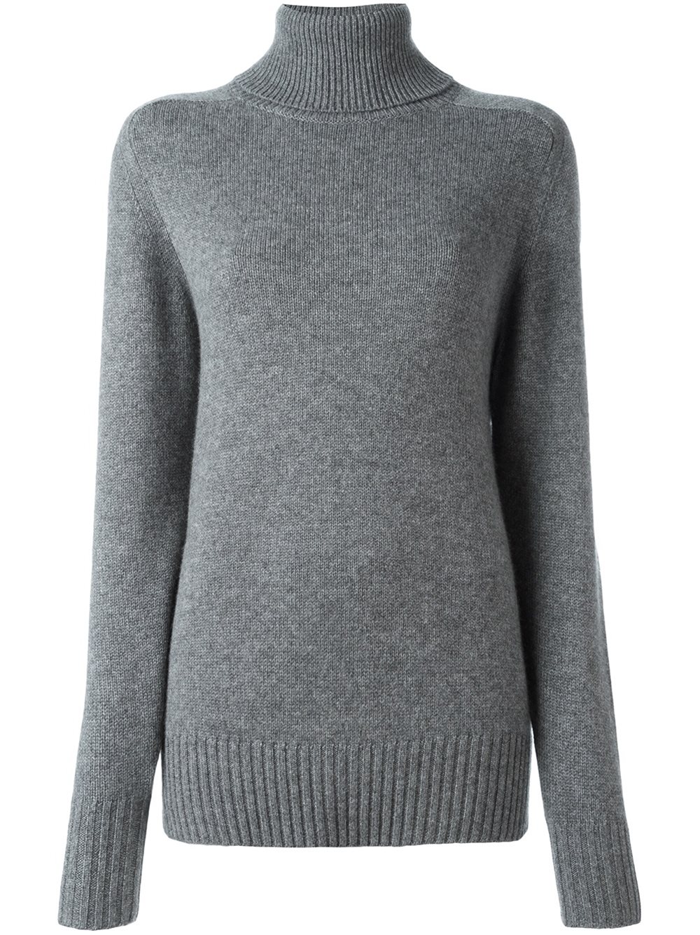 - Chloé (寇依) 深灰色 羊绒 罗纹高领毛衣。 高领, 罗纹衣领, 针脚细节, 罗纹底边及袖口, 长袖。