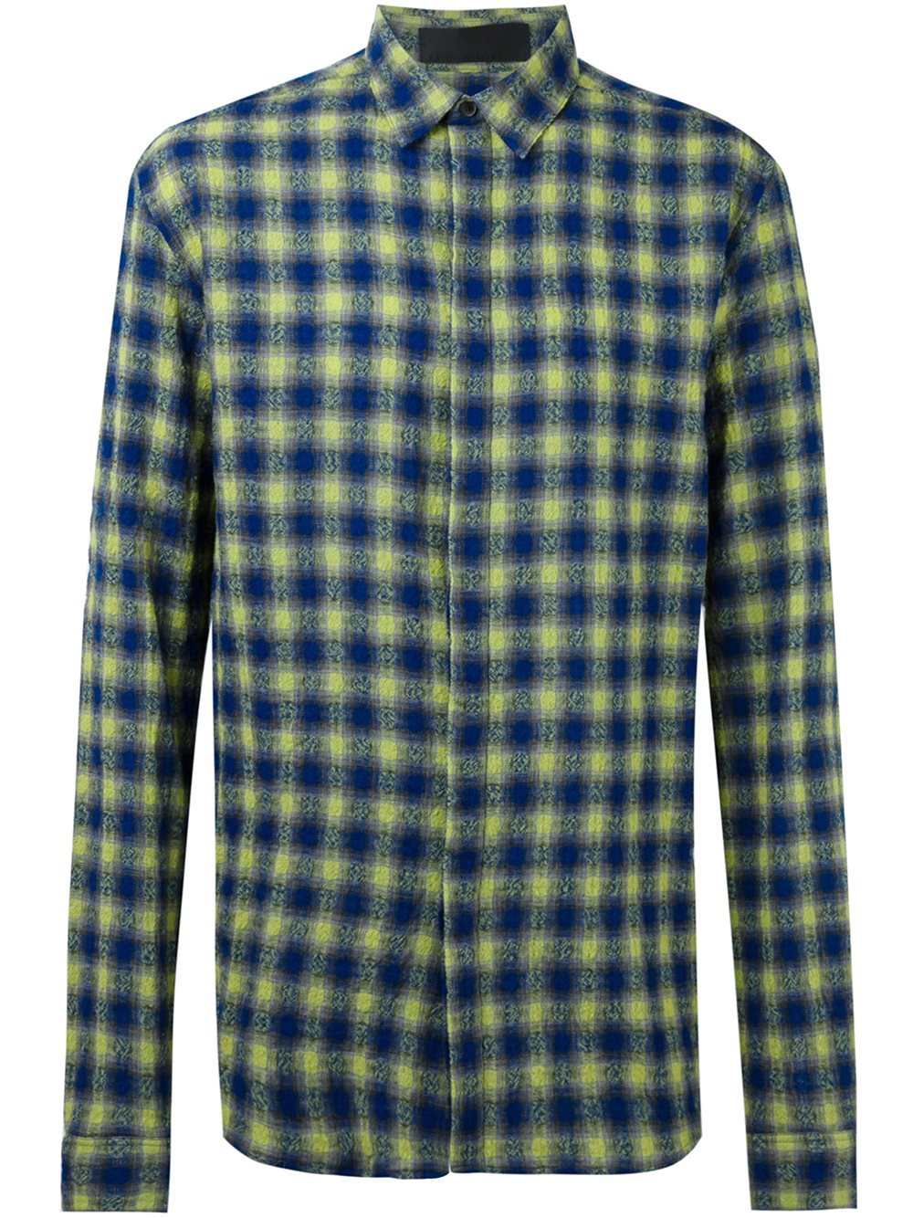 - Haider Ackermann 蓝色 羊毛 格子衬衫。