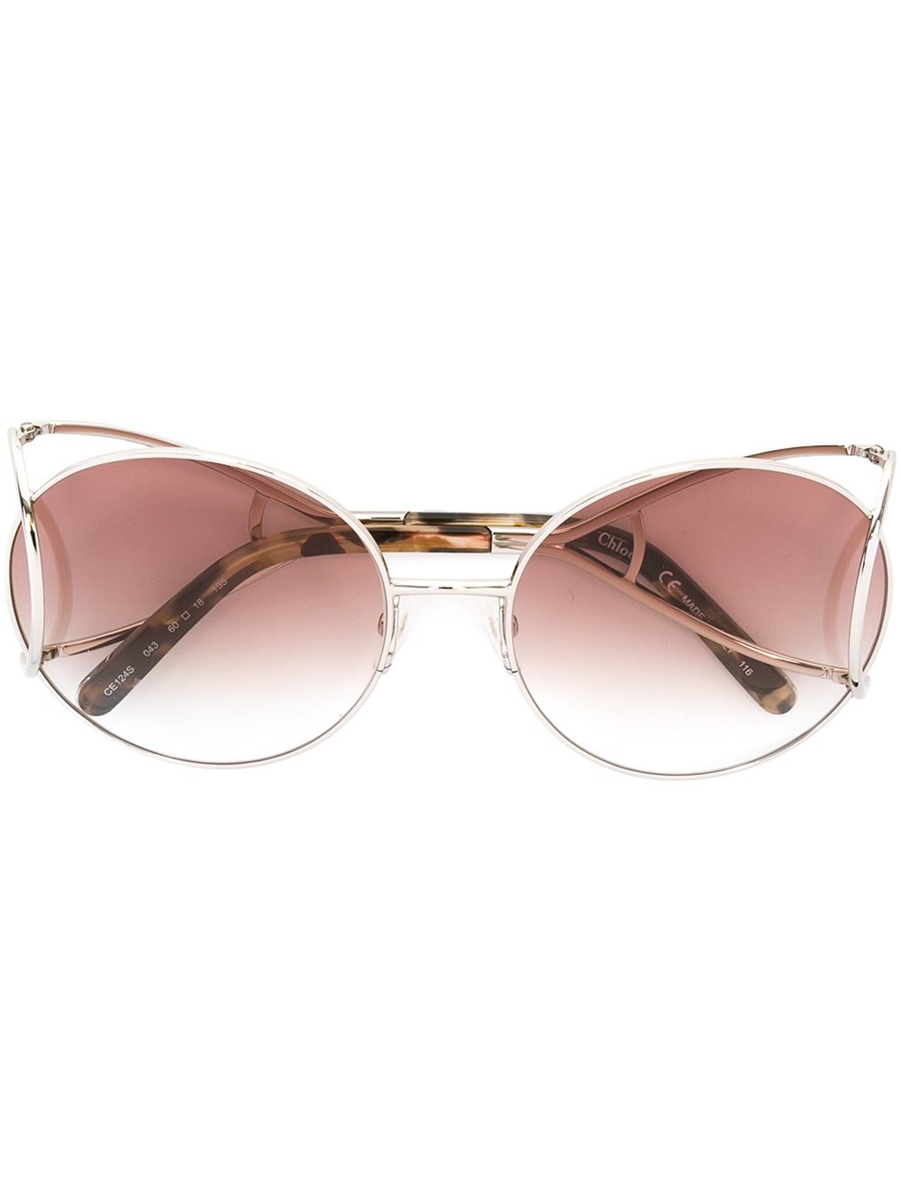 - Chloé (寇依) 银色与褐色 醋酸纤维 'Jackson'太阳眼镜。 圆框, 玳瑁纹细节, 渐色镜片, 镜腿外带品牌标志。