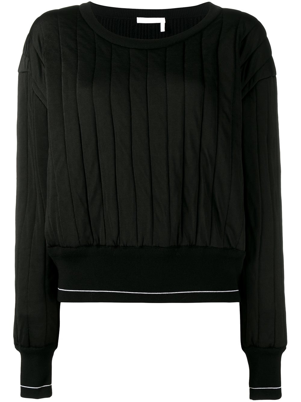 - Chloé (寇依) 黑色 初剪羊毛混纺 机车毛衣。 圆领, 罗纹边饰, 垮肩, 绗缝效果, 长袖, 平直下摆。