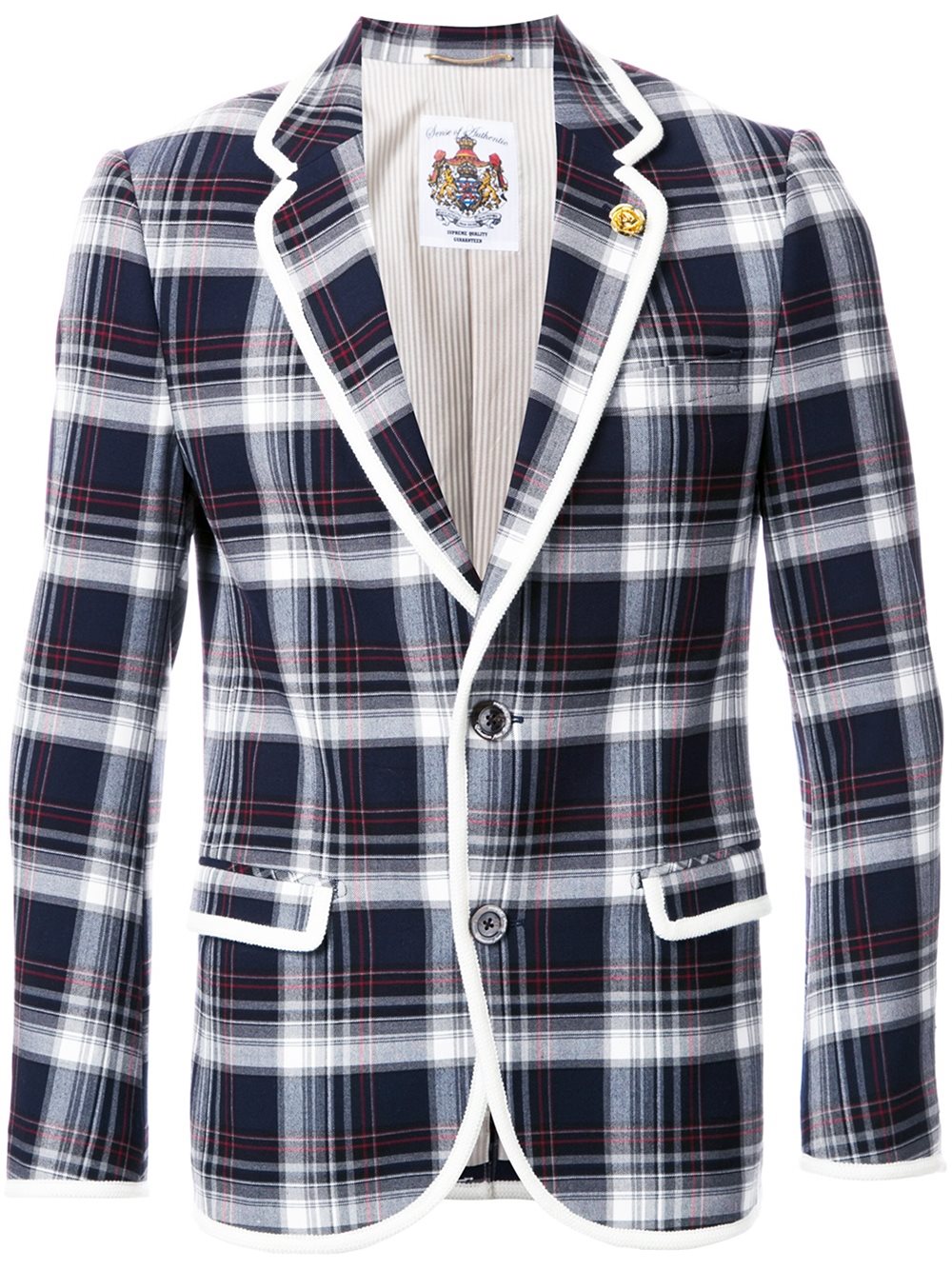 - Dark blue plaid single breasted coat from Education from Youngmachines.