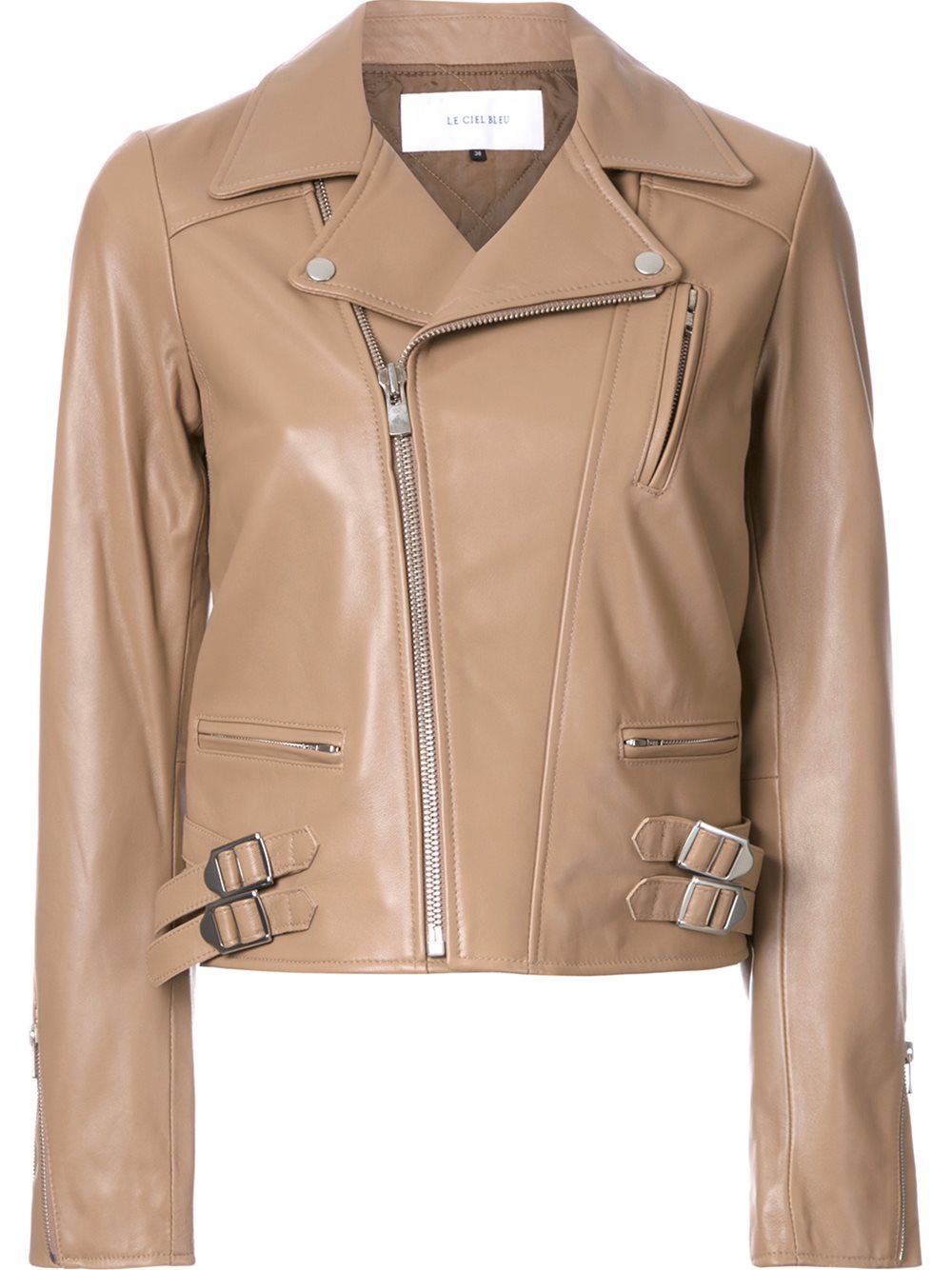 - Le Ciel Bleu 驼色 小羊皮 'Leather Rider'夹克。
