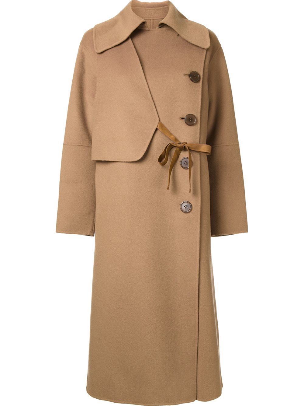 - Le Ciel Bleu 米色 羊毛混纺 'Handsome Wrap‘风衣。