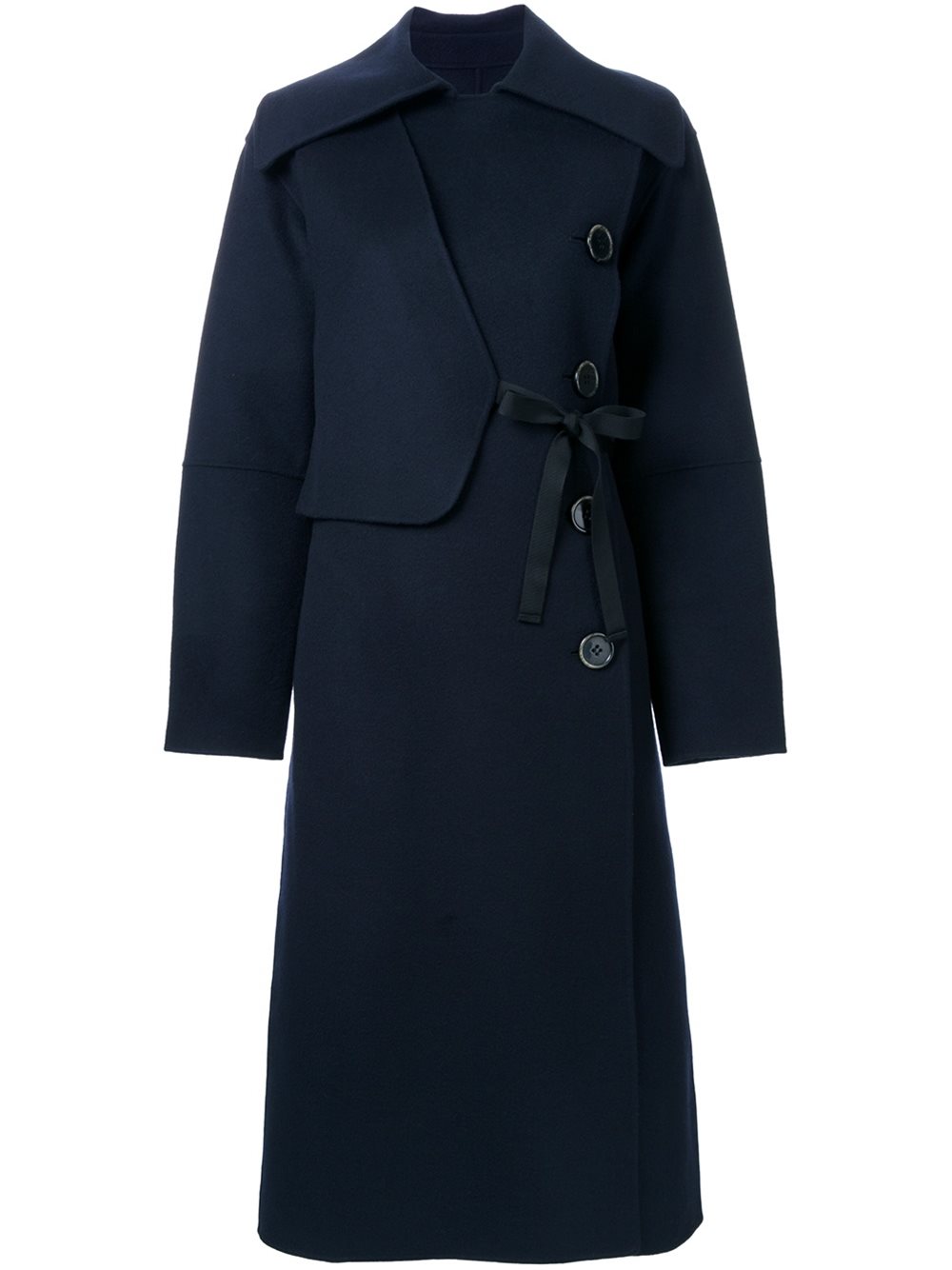 - Le Ciel Bleu 海军蓝色 羊毛混纺 'Handsome Wrap'风衣。