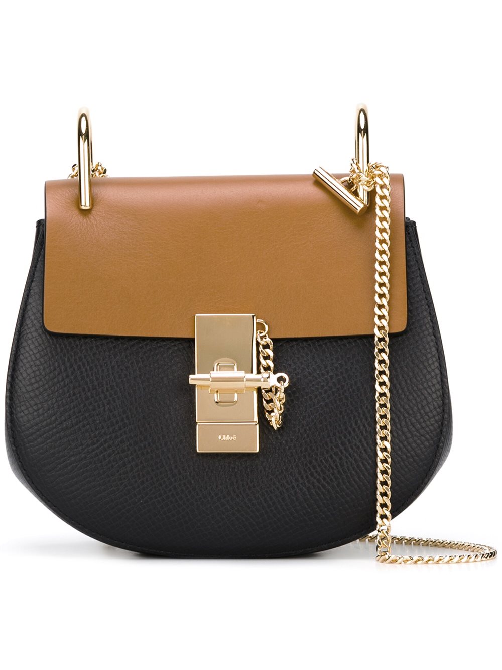 - Chloé (寇依) 蓝色与黄色 小牛皮与小牛绒面皮 'Drew'单肩包。 翻盖饰有旋扣, 金色五金配件, 正面饰有浮雕品牌标记, 石子质感的皮革表面, 双色设计, 金色铁链肩带, 口袋。