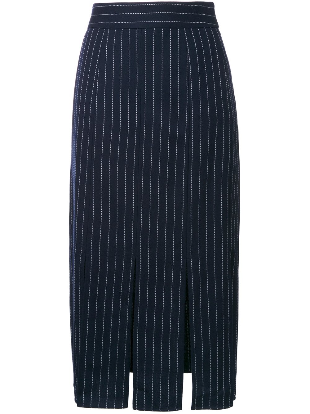 - Le Ciel Bleu 海军蓝色 羊毛 细条纹开衩半身裙。