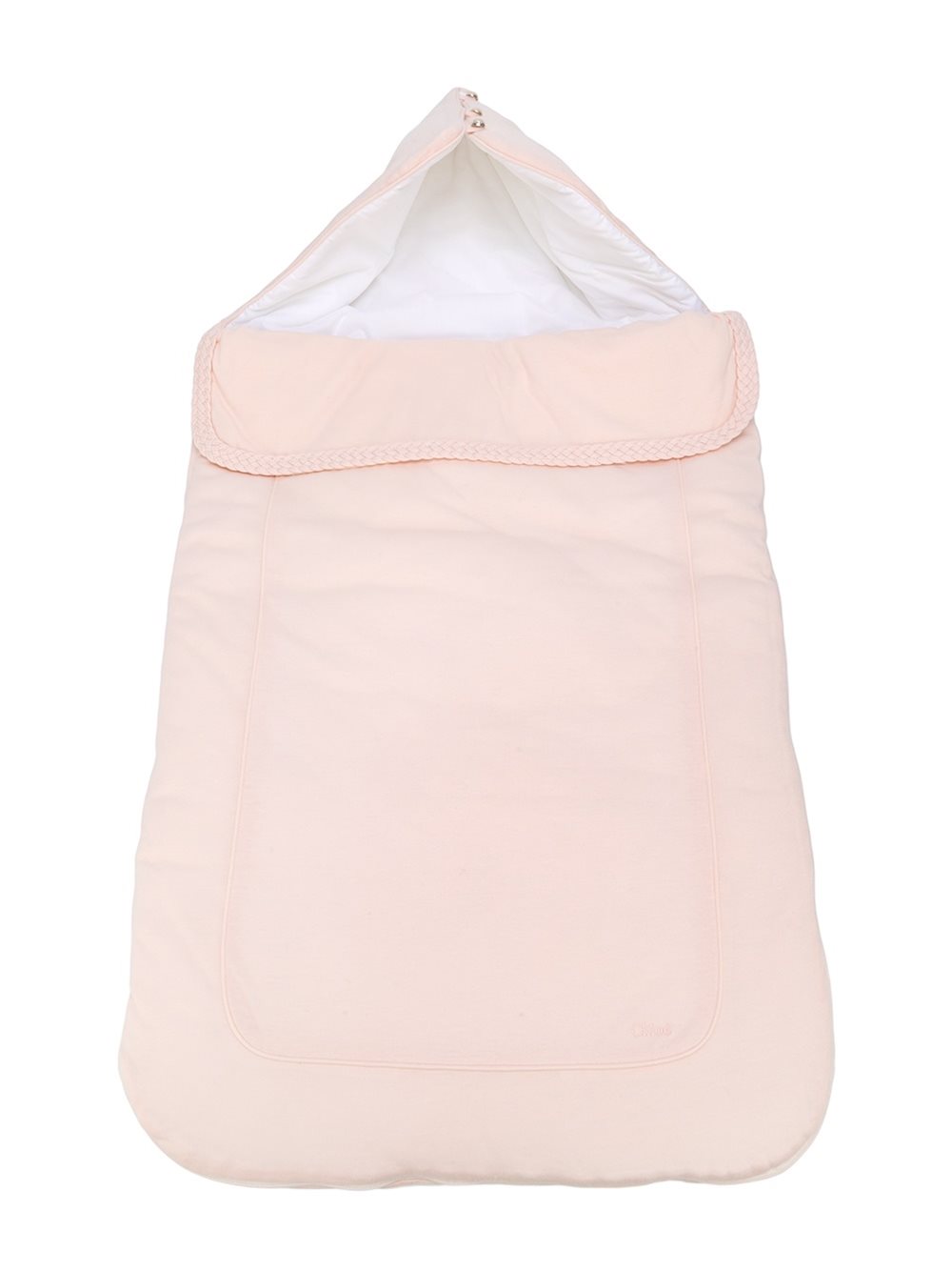 - Pink cotton padded nest from Chloé featuring a braided trim, gold-tone buttons at the hood and a side and base zip fastening.