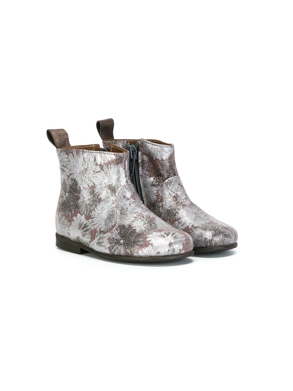 - Pèpè 银色与多色 山羊皮 花卉印花短靴。 圆头, 侧置拉链, 缝合拼接设计, 后置提鞋环, 鞋垫饰有品牌标识, 皮革质鞋垫, 平底橡胶鞋底。