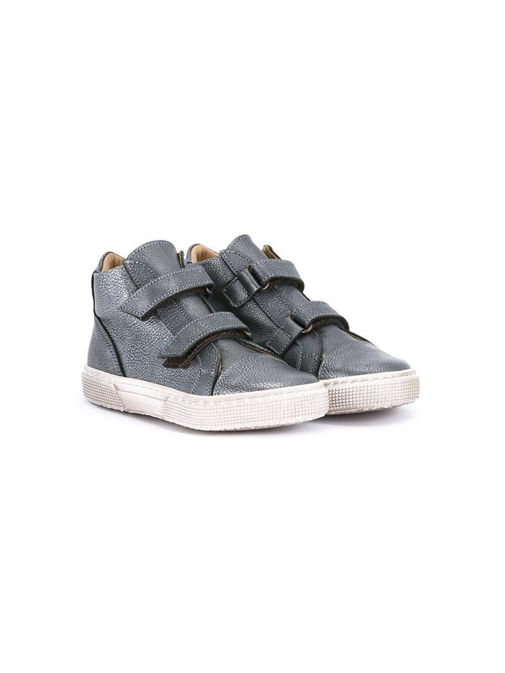 - Pèpè 灰色 小牛皮 金属感高帮板鞋。 圆头, 附有魔术贴, 护踝垫, 鞋垫饰有品牌标识, 皮革质鞋垫, 白色橡胶质鞋底。
