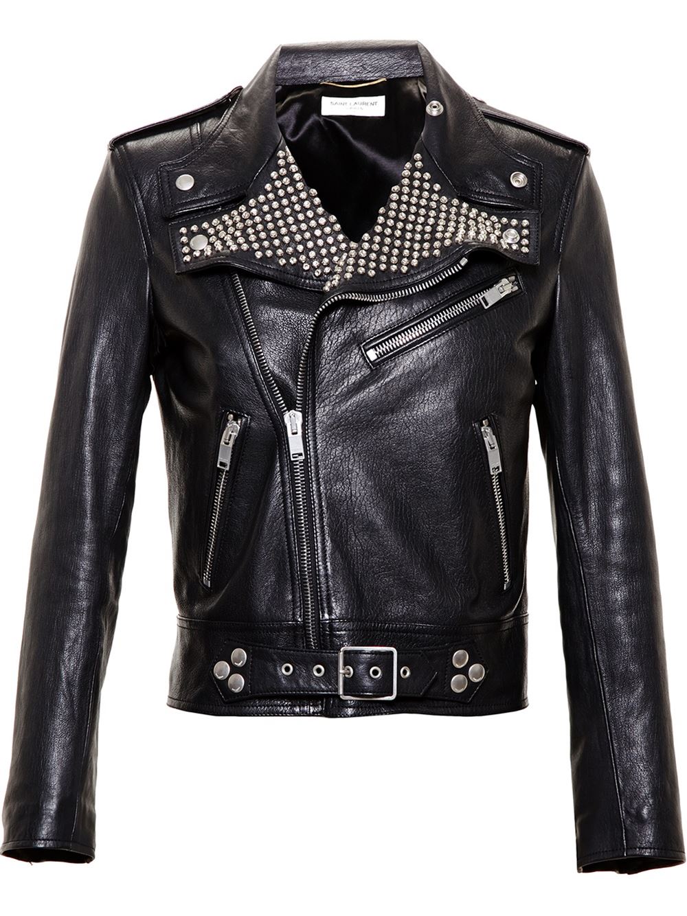 - Saint Laurent 黑色 小羊皮 铆钉机车夹克。