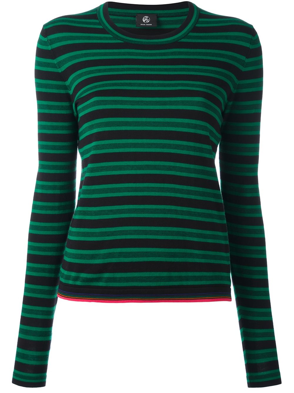 - Ps By Paul Smith 绿色与黑色 全棉 条纹毛衣。