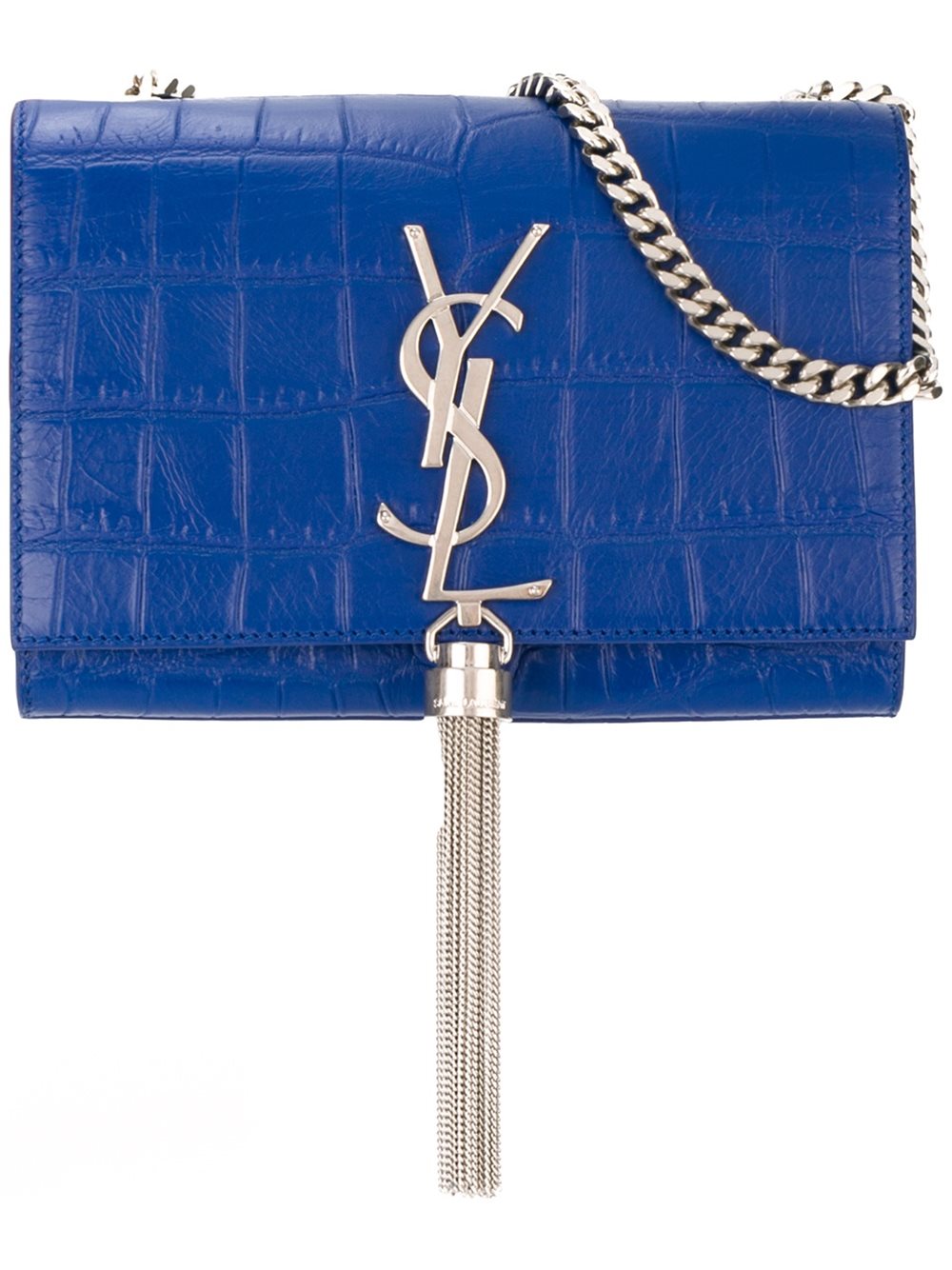 - Saint Laurent (圣罗兰) 蓝色 小牛皮 'Classic Monogram'斜挎包。