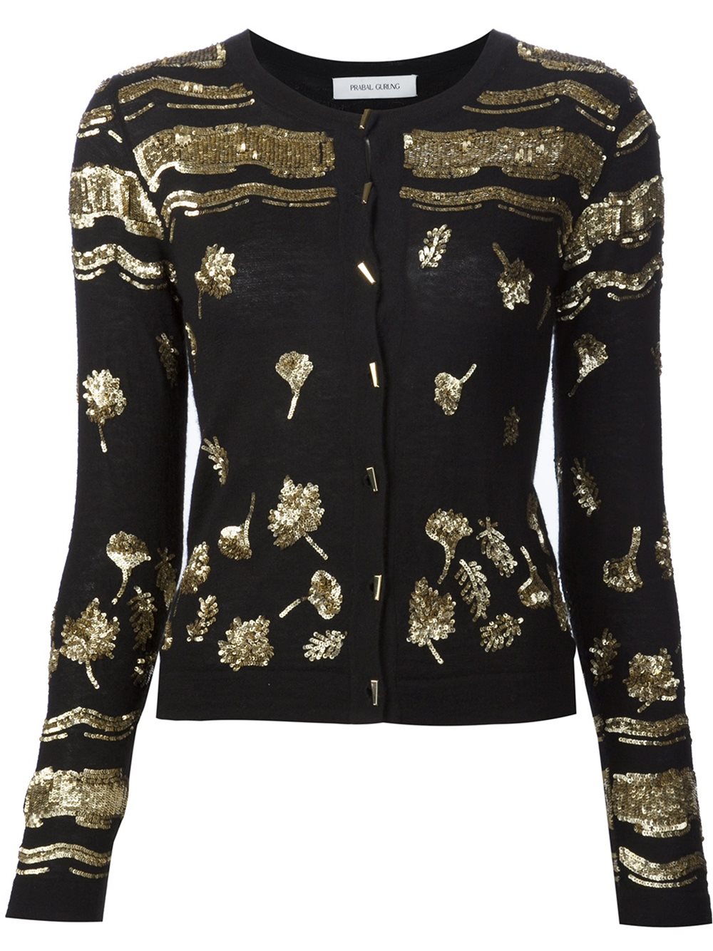 - PRABAL GURUNG 黑色 羊绒 亮片刺绣开衫。