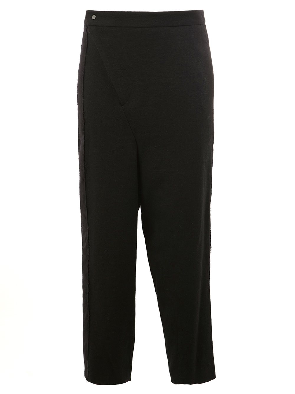 - Thin black wool-cashmere blend dislocated fastening cropped trousers from Aganovich.