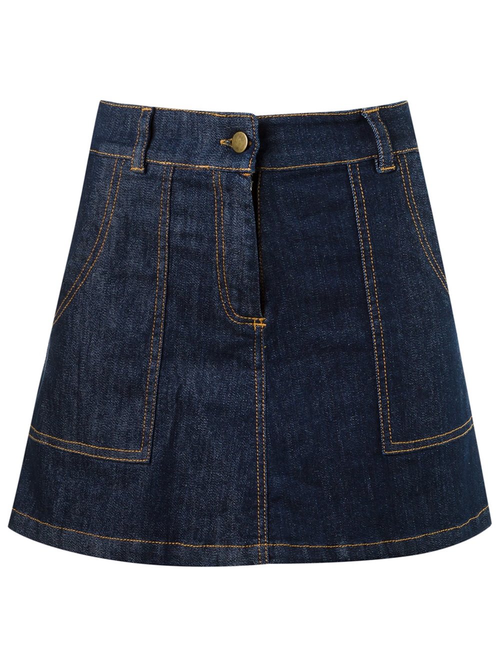 - Blue cotton denim skirt from Andrea Bogosian.