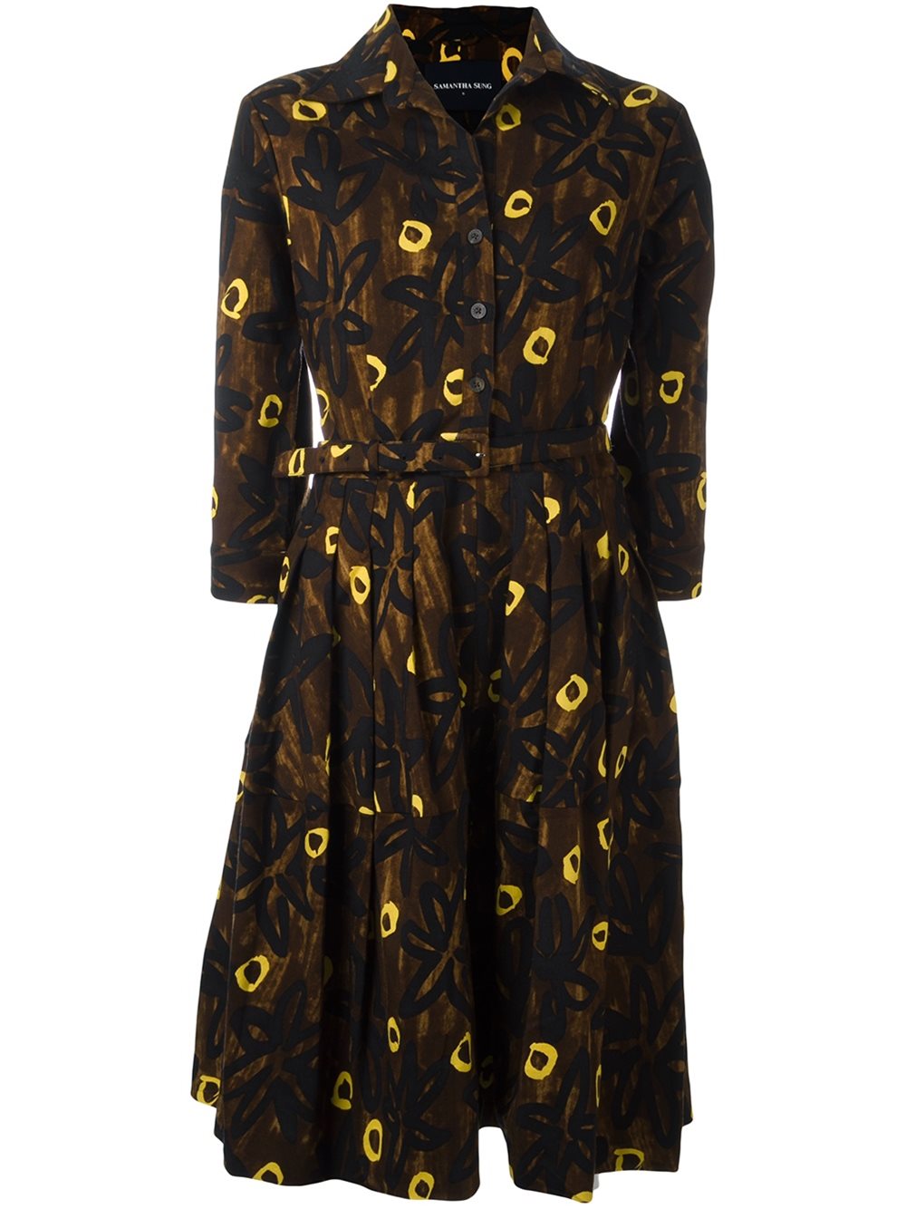 - Sepia soft yellow wool-silk blend 'Claire Seye' dress from Samantha Sung.