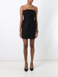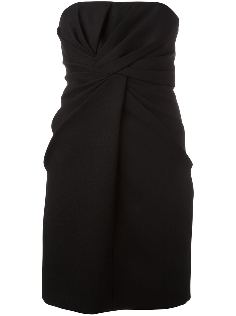 - Saint Laurent (圣罗兰) 黑色 真丝与羊毛 露肩褶饰连衣裙。 无肩带设计, 侧置隐藏式拉链, 束腰, 百褶细节, 平直下摆, 短款。