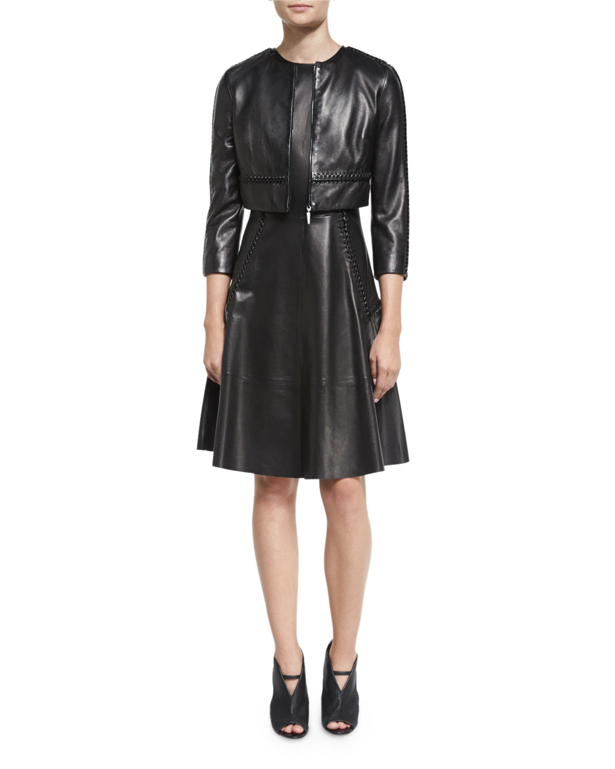 - Prabal Gurung lambskin leather jacket with braided trim.