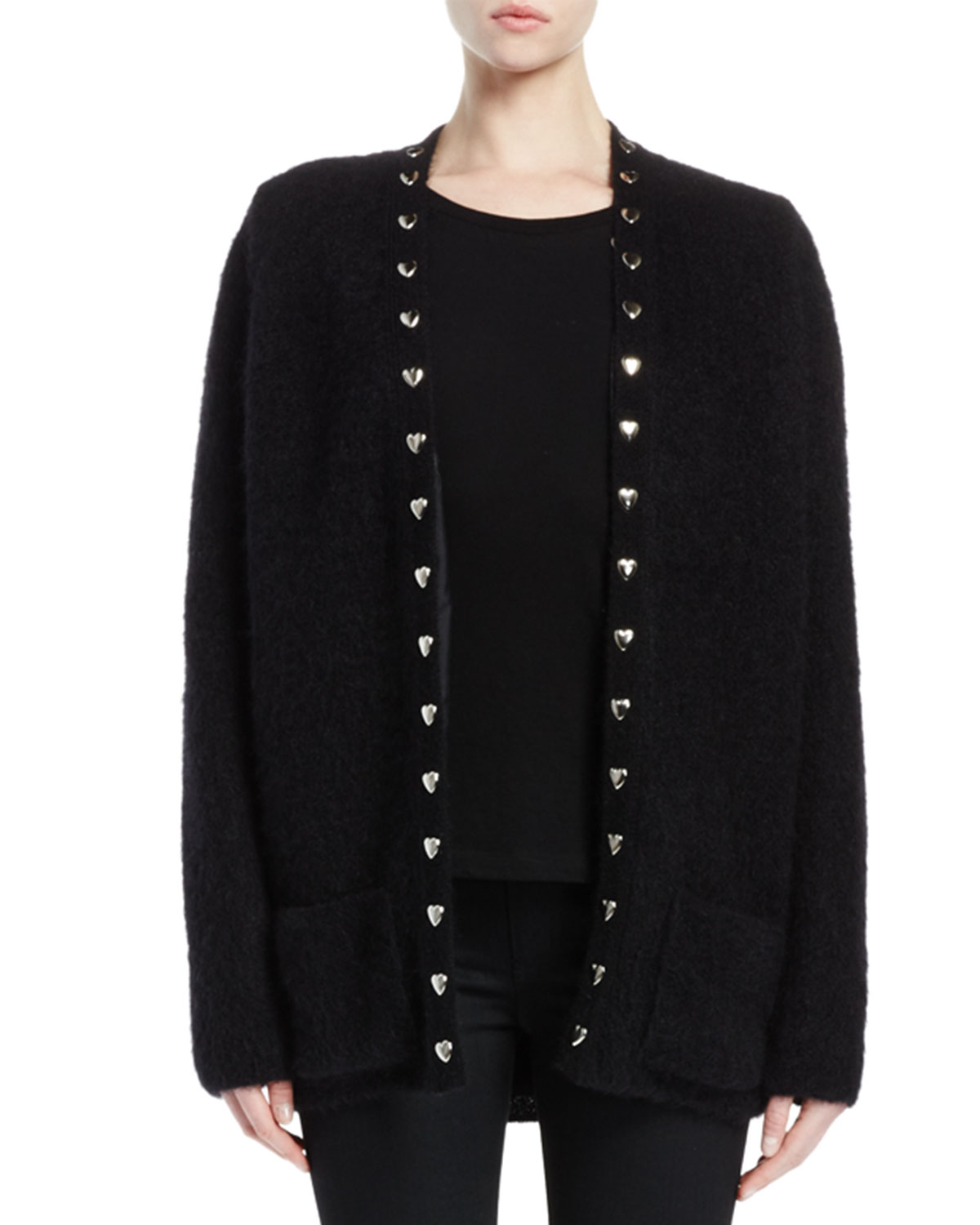 Saint Laurent Sweetheart Stud-Trim Oversized Sweater, Black
