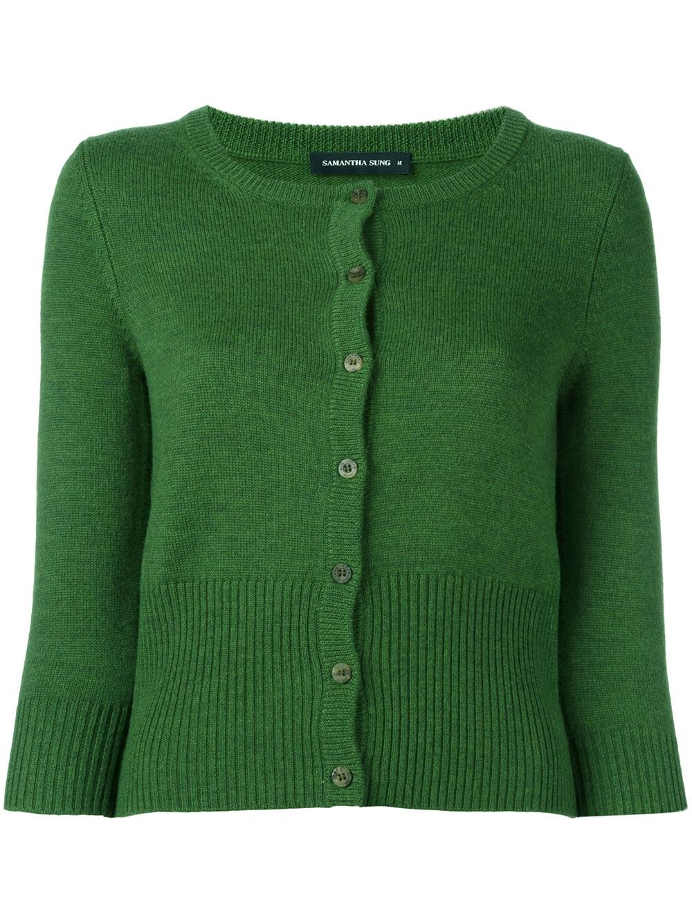 - Rose pink wool-cashmere blend 'Natalie' cardigan from Samantha Sung.