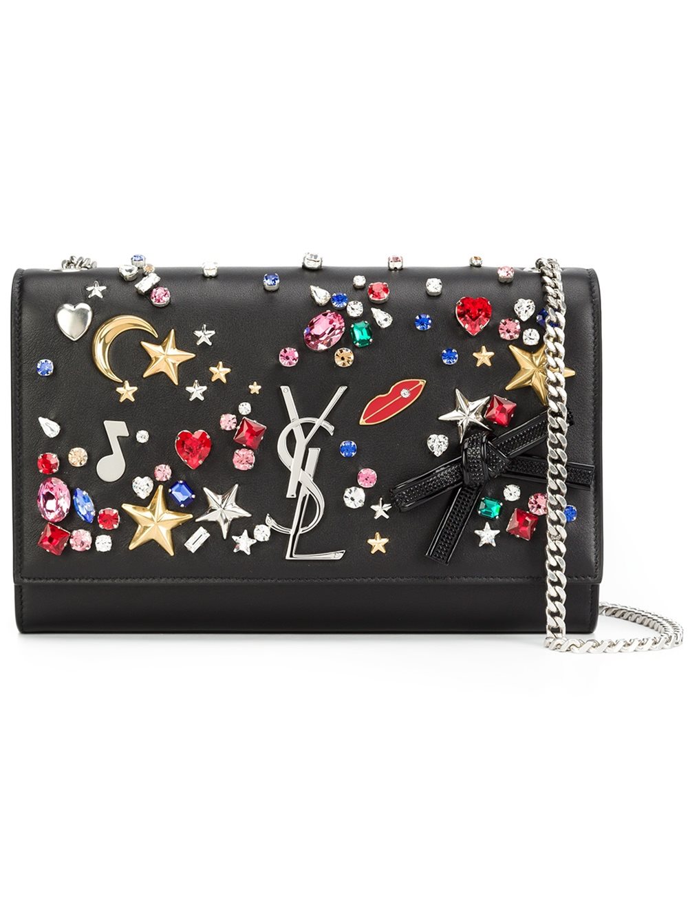 - Saint Laurent (圣罗兰) 黑色 牛皮 'Monogram'镶嵌单肩包。 搭链肩带, 银色五金配件, 正面标志贴, 翻盖饰有插入式的摁扣, 内置标签, 内置贴袋, 内置标牌。