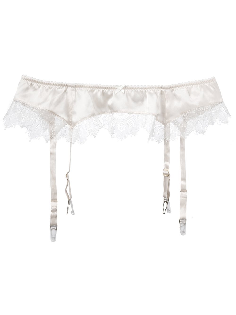 - Gilda & Pearl 象牙白色 丝绸混纺 'Gilda for Dolci'吊带皮带。试穿贴身内衣时,请穿着于自身衣物之外。