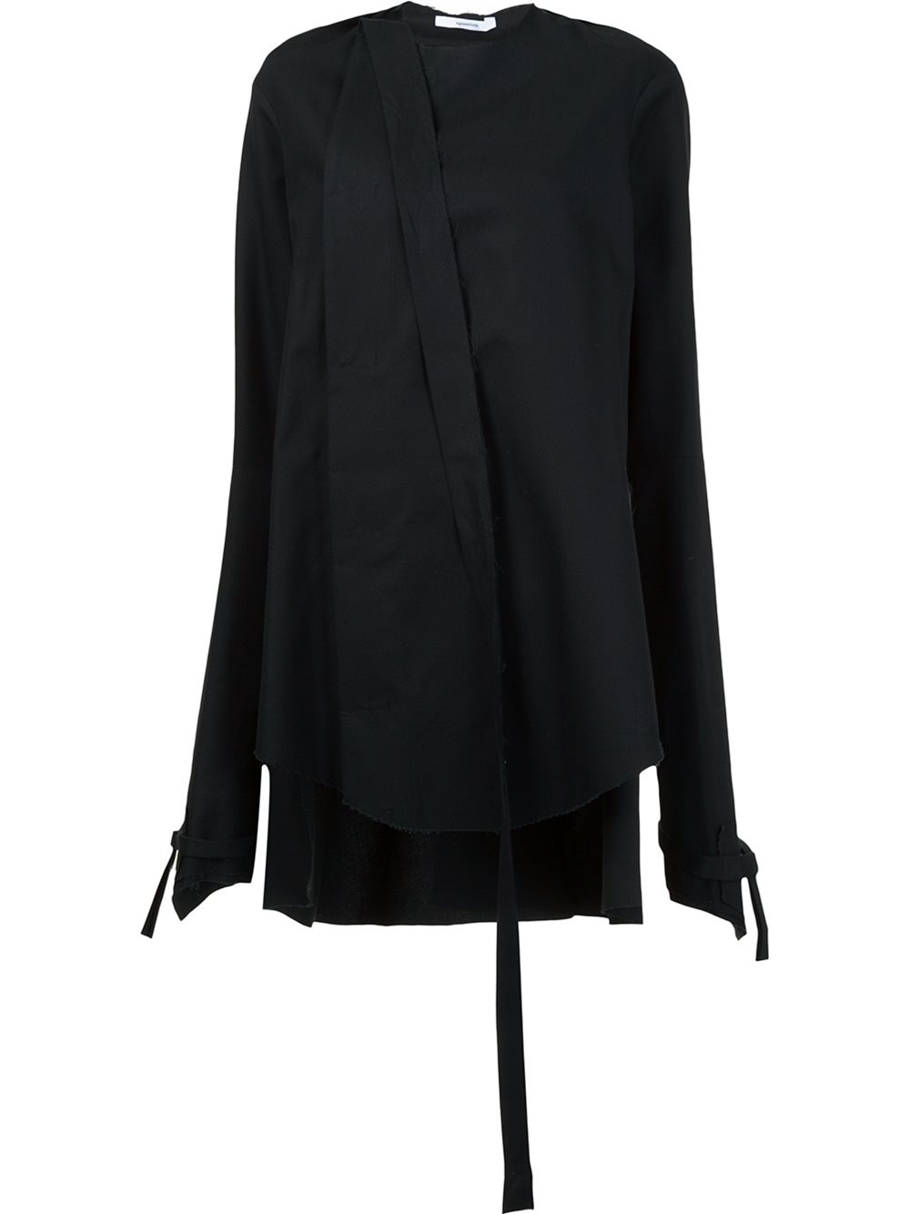 - Aganovich 黑色 全棉 长款磨损边罩衫。