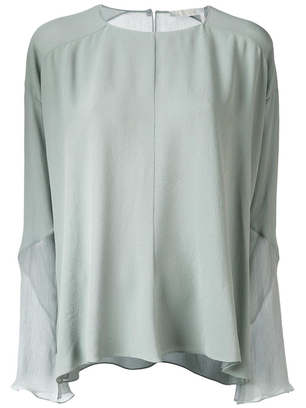 - Grey blue silk loose fit long sleeve blouse from Chloé featuring a round neck, a rear keyhole detail, long length raglan sleeves and a loose style.