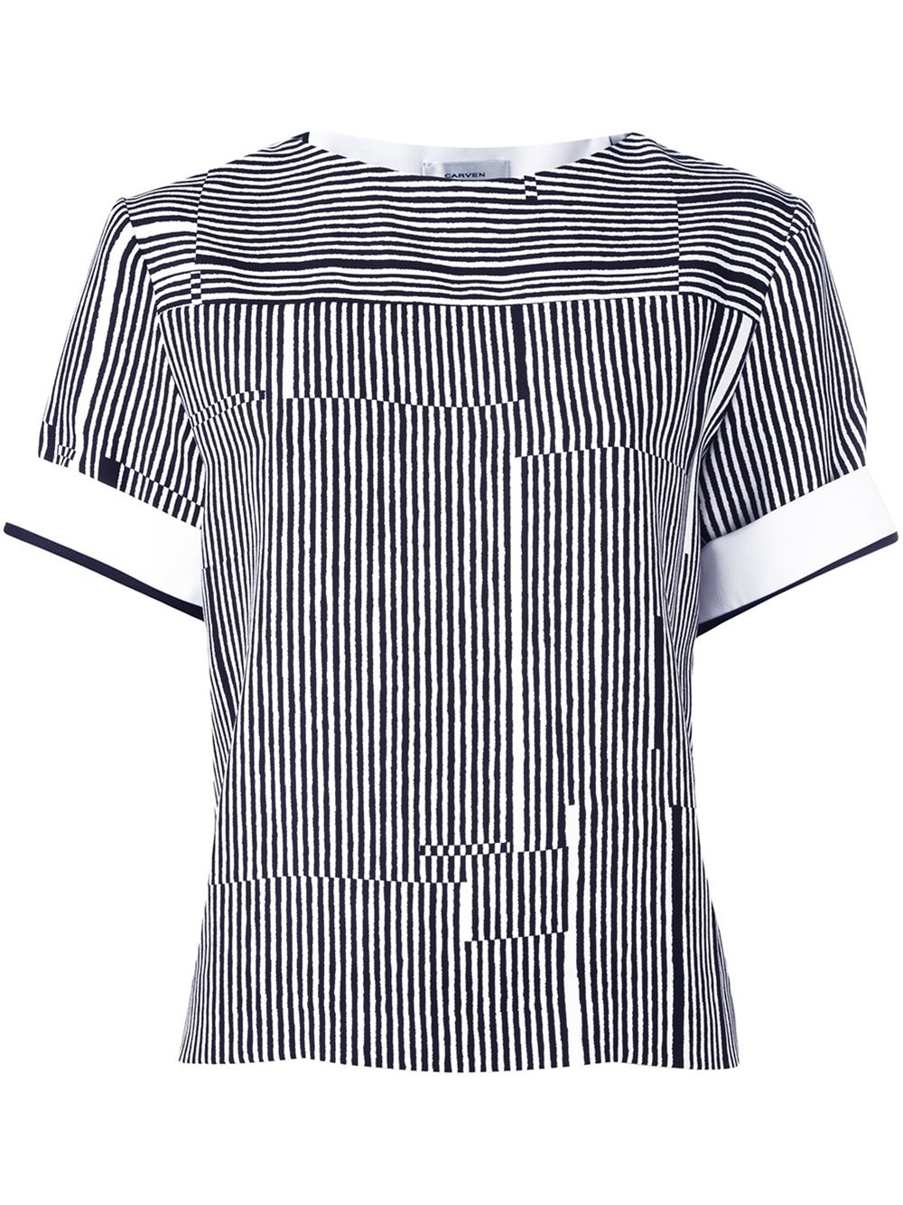 - Carven (卡纷) 黑色与白色 全棉 条纹高领罩衫。