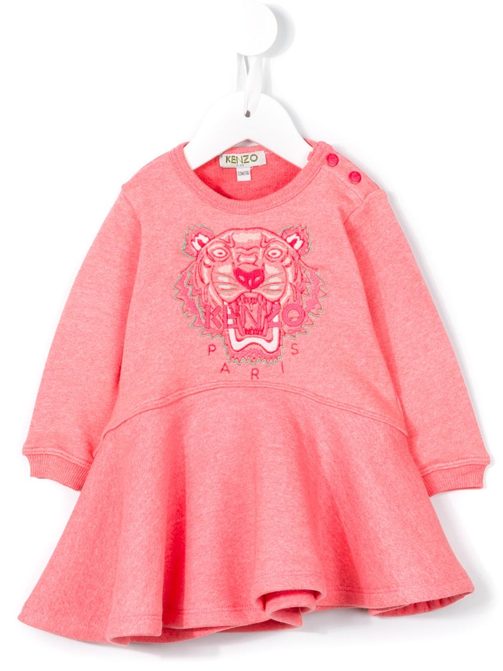 - KENZO KIDS 粉色 棉质混纺 'Tiger'连衣裙。 圆领, 搭扣肩章, 长袖。