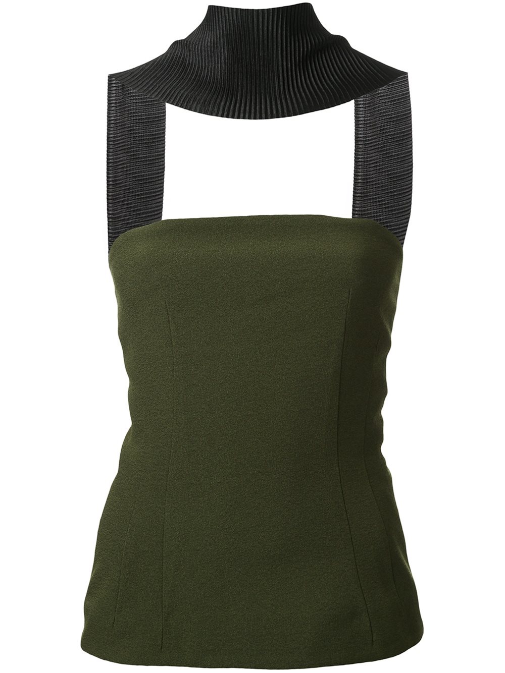 - Christopher Esber 卡其绿色与黑色 双面百褶绕领式上衣。