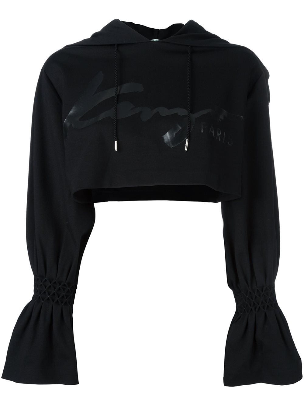- Kenzo (高田贤三) 黑色 'Signature' 短款连帽衫。 抽绳兜帽。