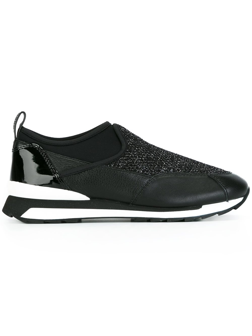 - Hogan Rebel 黑色 牛皮 对比拼接无带运动鞋。