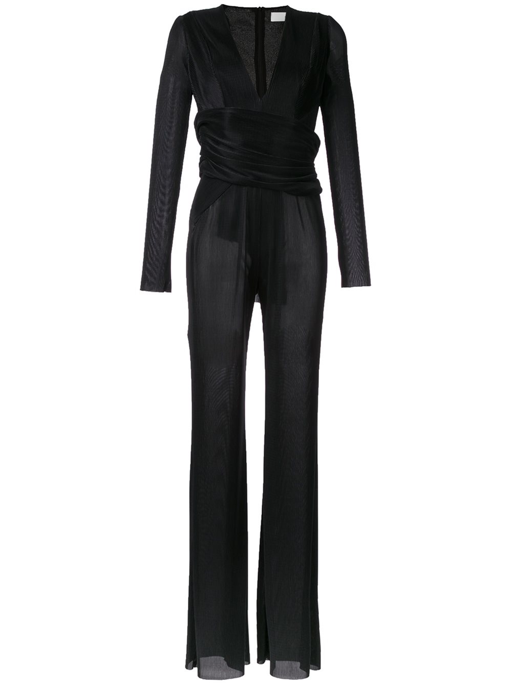 - Black pleated deep v-neck jumpsuit from Galvan.